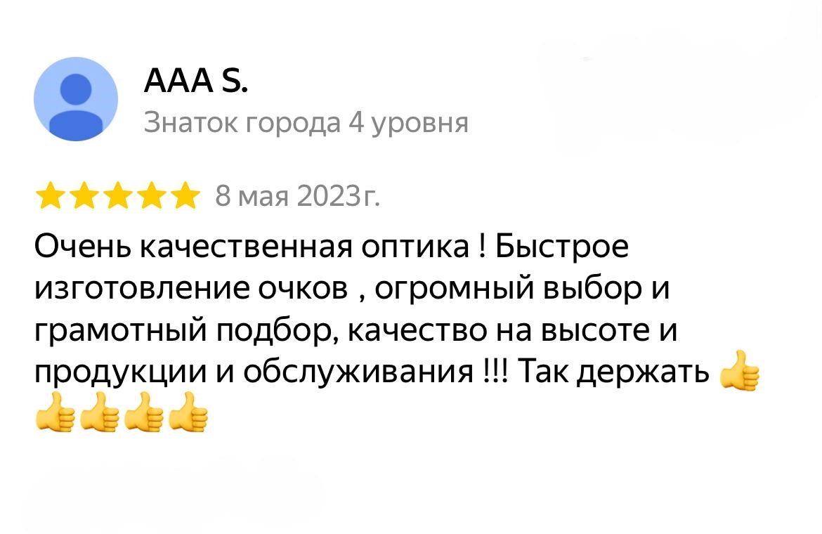 Быстрый и качественный сервис по подбору очков всего за один час.